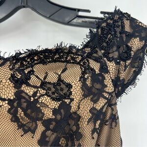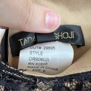 Tadashi Shoji Size 6 Black Lace & Nude Off The Shoulder Long Evening Gown
