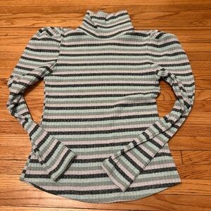 Anthropologie Maeve Striped Puff Shoulder Ribbed Stretch Turtleneck