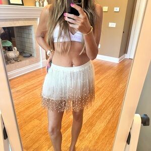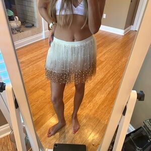 Chic Cream Beaded Mini Skirt