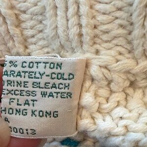 L.L. Bean Floral Heavy Cotton Sweater - Pink and Teal on Cream