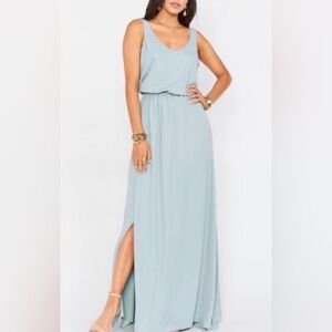 Show Me Your Mumu Jen maxi dress NWT Size XXS Color steel blue. Fitted bodice. Back zipper. Fully lined.