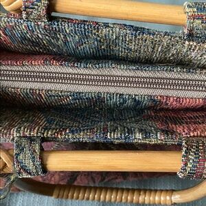 Vintage Kulanui of Hawaii woven material bag, tropical-themed, bamboo handles, pocket inside, interior clean , no pen marks, great shape, PF/SF closet