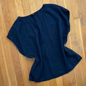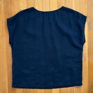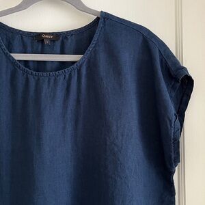 Quince Size Large 100% Linen Navy Blue Boxy Blouse Top Short Sleeved Shirt