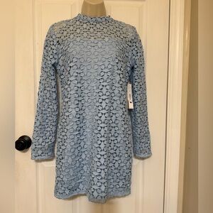 NWT AQUA Sky Blue Lace Long Sleeve Sheath Dress Size M