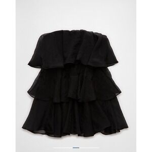 American Eagle Black Tiered Ruffle Mini Dress Strapless Babydoll XS New