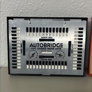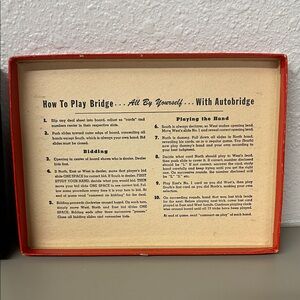 Auto Bridge play-yourself bridge game. Deluxe pocket model for beginners and average players. Bright red box.