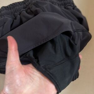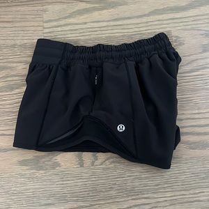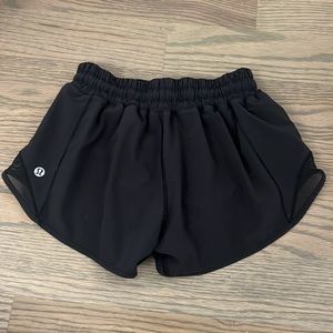 Black Lululemom hotty hot shorts in excellent used condition. Size 2. Perfect for running and running around in style. Inner short.
