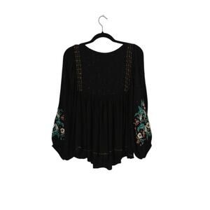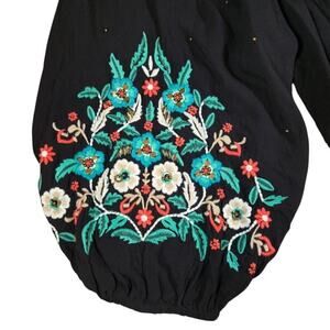 Floreat Anthropologie Embroidered Peasant Top Medium Black Bohemian Whimsigoth