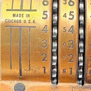 The machine has a durable metal body with a golden finish on the dials and readout windows. Item has rust & yellowing (see pics), the dials seem to work, though it would need to be oiled up and serviced if you want to wear a green visor and use it to add in a smoke filled room ;) There are scuffs, scratches, discoloration, rust, dust, & signs of age. This is a vintage Precise adding machine, a mechanical calculator made in Chicago between 1946 and 1949.