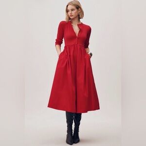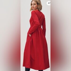Brand new, never worn with tags, Anthro Maeve red Midi cotton long sleeve Dress
