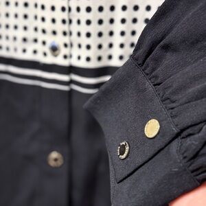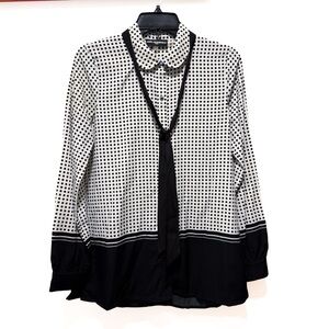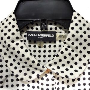 Karl Lagerfeld Paris Polka Dot Tie-Neck Blouse - Black & White Colorblock - S