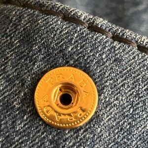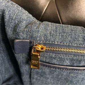 Auth PRADA Canapa Blue Denim Tote Bag gold hardware rolled handle 16”W 11”D 10”H
