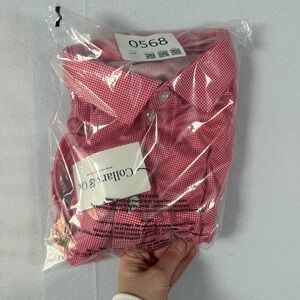 Collars & Co Mens Dress Collar Polo Shirt 2XL Red White Houndstooth Golf New