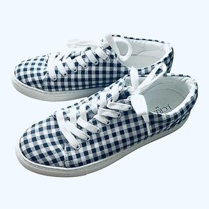 J.Crew casual walking Blue and White Gingham plaid canvas Sneakers Women’s 7.5