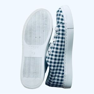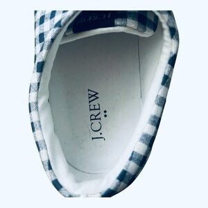 Stylish J.Crew sneakers/canvas with a navy blue and white gingham pattern.