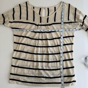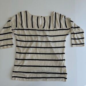 LOFT Petites SP Beige Black Stripe 3/4 Sleeve Knit Top Keyhole Back