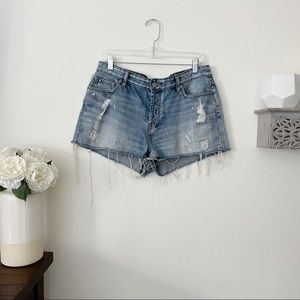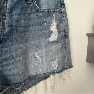 Rails cut off jean shorts with paint splatter and distressing size 30/US 10