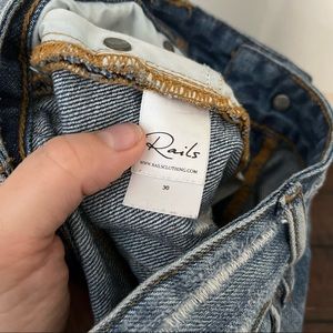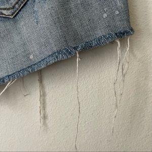 Rails cut off jean shorts with paint splatter and distressing size 30/US 10. Excellent condition, no stains or flaws. Features a cut off style frayed hem, with white paint splatter detail all over, zipper and button closure, distressing in spots.