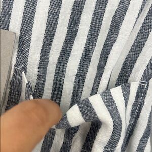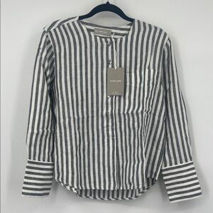 Chic Everlane shirt with navy and white stripes. Features a classic button-up design.