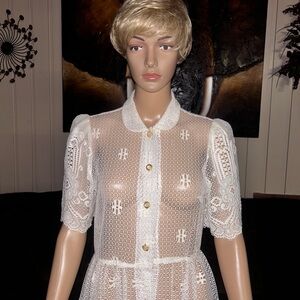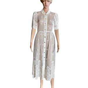 Vintage (1960’s) USA ~ Size 6 ~ Net Floral Lace Edwardian Embroidery Sexy Dress