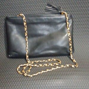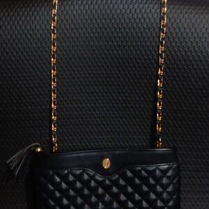 Elegant Black Quilted Crossbody Bag with Gold Accents