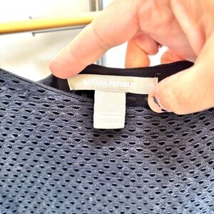 Hello, love! Banana republic size 8, black midi dress. Style 970072. Fully lined in the body not on the sleeves. Inside out pictures show you. Soft stretchy material. Dress is lower cut and back. Sleeves hit just above the elbow. There is no fading on this dress it’s jet black however it’s tricky in the pictures to show the texture of the dress and also not make it look faded with turning up a little bit of the exposure. Half length sleeves. All of your questions and offers are welcomed. Xox