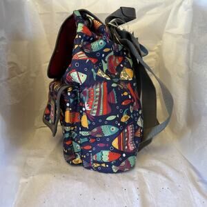 This backpack showcases a unique multicolor fish print that is not made new any longer making it a great find for collectors and fans of Lily Bloom designs. With its lightweight construction and spacious interior, it’s perfect for school, travel, work, or everyday use.