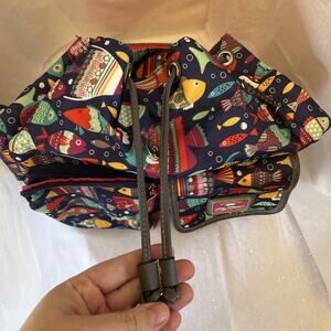 Lily Bloom Green Living Sea Ocean Fish Aquatic Drawstring Backpack Bag