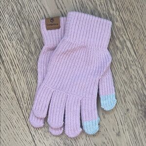 Stay cozy and stylish with this pink knit hat, scarf, and gloves set. Perfect for chilly days. Never been worn