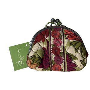 Vera Bradley Double Kiss Hello Dahlia Floral Coin Purse Wallet Quilted Fabric