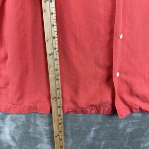 Claiborne Button Up Shirt Men's XL Coral Red Orange 100% Silk Jacquard Pattern. Good used condition. See pictures for details and measurements.