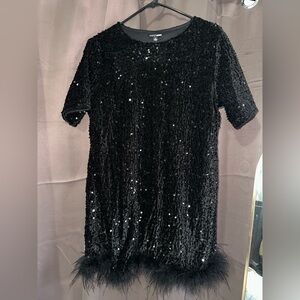 Sparkle and shine in this stunning black T-shirt sequin dress, perfect for any special occasion.