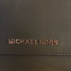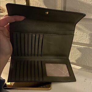 Chic dark olive wallet. Features gold Michael Kors logo. Elegant and versatile.