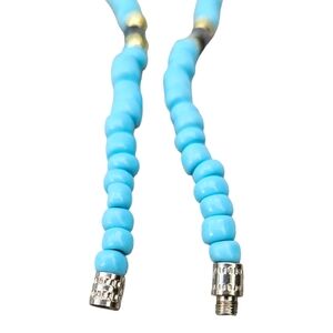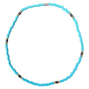 ●Bead Details: Turquoise blue seed beads with black cylindrical beads and gold-tone round spacer beads