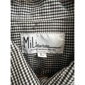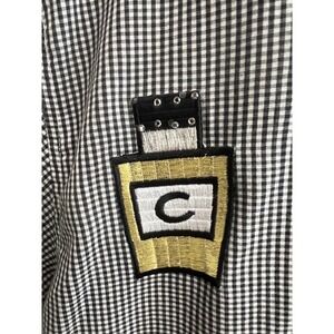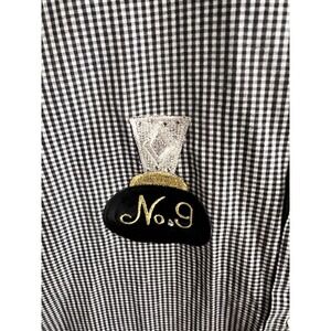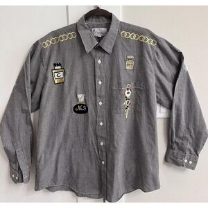 Vtg Mili Designs Button Down Shirt Black White Embellished Patches Womens Large
