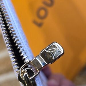 Stylish Louis Vuitton wristlet in light purple. Features elegant design and premium craftsmanship.