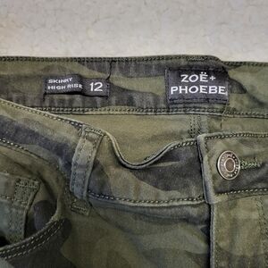 Zoë + Phoebe Camo Skinny Jeans Womens Size 12 High Rise Stretch Army Green Pants