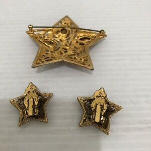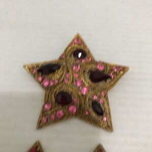 Gold Star Brooch and Earring Set with Red and Pink Gems.