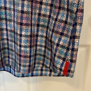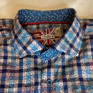 7 Downie St London Couture 2X XXL Blue Plaid Short Sleeve Shirt