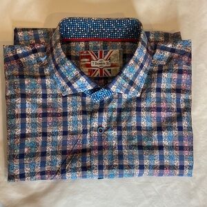 Excellent used condition — priced fairly and open to reasonable offers. Premium London Couture detailing with bold contrast interior trim and breathable 100% cotton. A sharp short-sleeve plaid that works for office casual, summer events, or elevated everyday wear. Best fits Men’s 2X/XXL — please compare measurements.