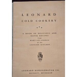 Vintage Leonard Cold Cookery Cookbook Mary Lee Gordon Detroit Refrigerator Co