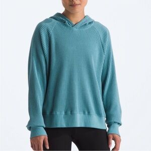 The North Face Chabot Hoodie in algae blue. Relaxed waffle knit hoodie. Gently used condition. Women’s size S. Measurements shown in photos.