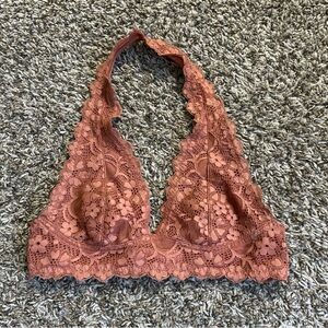 Intimately Free People Bralette Women’s S Dusty Rose Orange Lace Galloon Halter
