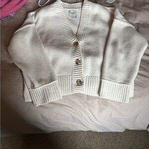 Elegant cream sweater with button-up front. Soft knit fabric. Perfect for layering.