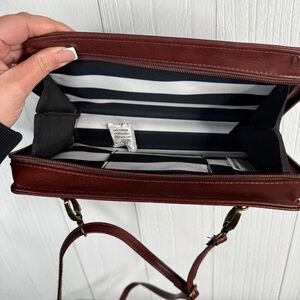 Stylish red leather crossbody bag with a unique design. Perfect for adding a pop of color to any outfit.