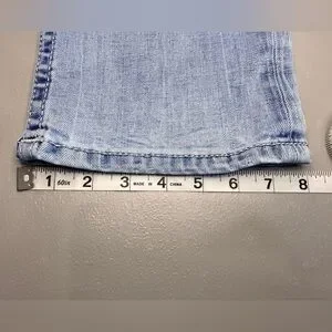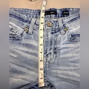 Men or Boy’s BKE Aiden distressed light washed bootcut denim jeans size 27x34. Cassic western styling and comfortable everyday fit.