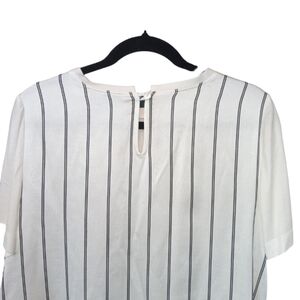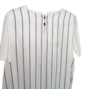 St John Viscose Jersey Mixed Media Contrast Stripe Detail Short Sleeve Blouse Top White and Black Size Medium