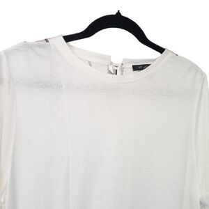 St John Viscose Jersey Mixed Media Short Sleeve Blouse Top White Size Medium
