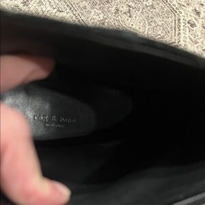 Love ❤️ these black ankle booties by Rag & Bone. Features a stylish design with a sturdy heel. Has a great worn leather / suede look. These are perfect for any minimalist closet!!!