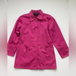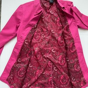 Vintage Y2K Bill Blass women’s hot pink trenchcoat/jacket with gorgeous Paisley lining. Size 8. 100% cotton. “Barbie pink” classic collar, single breasted button closure. Bright effortless Chic, bright, colorful, casual. Travel, vacation, modern classic, quiet, luxury, smart, casual. New without tags